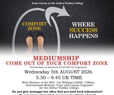 During this short course there will be times to practice your Mediumship, with a view to recognizing when you change from one aspect to the other, as well as realizing when you are confidently giving evidence from the Spirit communicator.