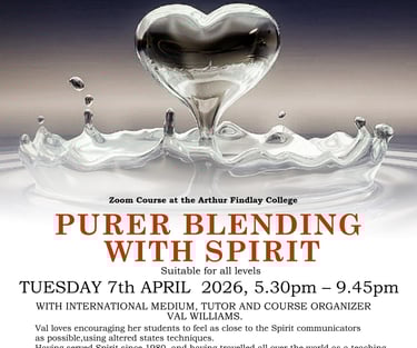No two communicators, from Spirit, are the same, none have had the same circumstances in life. If you are willing to learn new techniques, Val believes this short course could be the one for you, and she looks forward to encouraging you to KNOW when you are truly in the power with Spirit, and when, sometimes, you lose the connection and cannot re-connect.