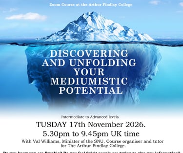 Val will work through a series of meditation, attunement, sitting in the power, and energy experiments, in order to help you prepare yourself in readiness for the close connection with Spirit that will enable you to be a confident and truly evidential medium.
