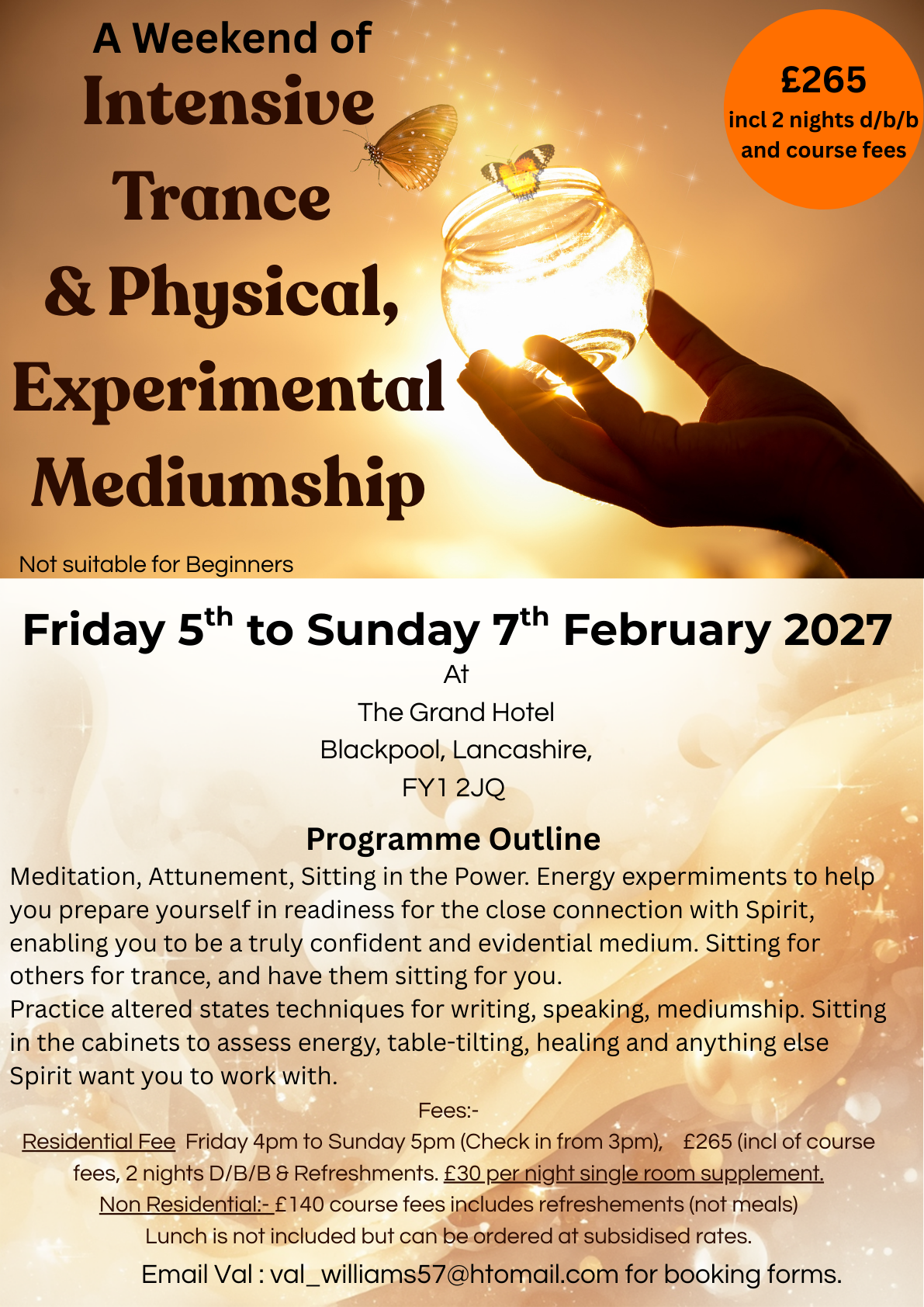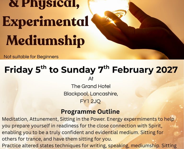 This course has been designed to challenge you; it is not a trance course but trance techniques will be used to help you to go more deeply into the energy of Spirit communications for evidence, public speaking and private sittings.
